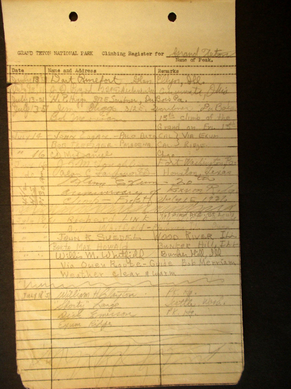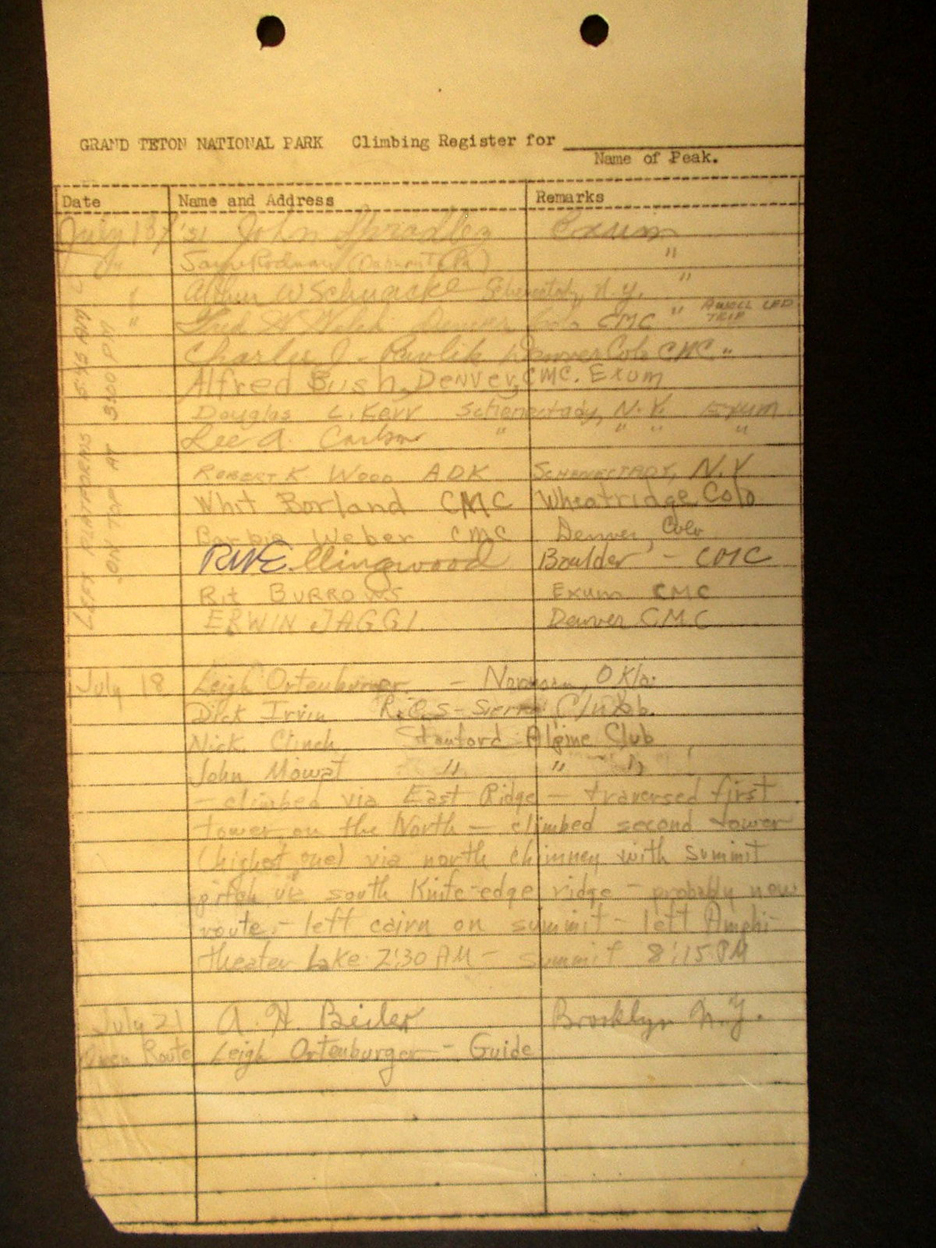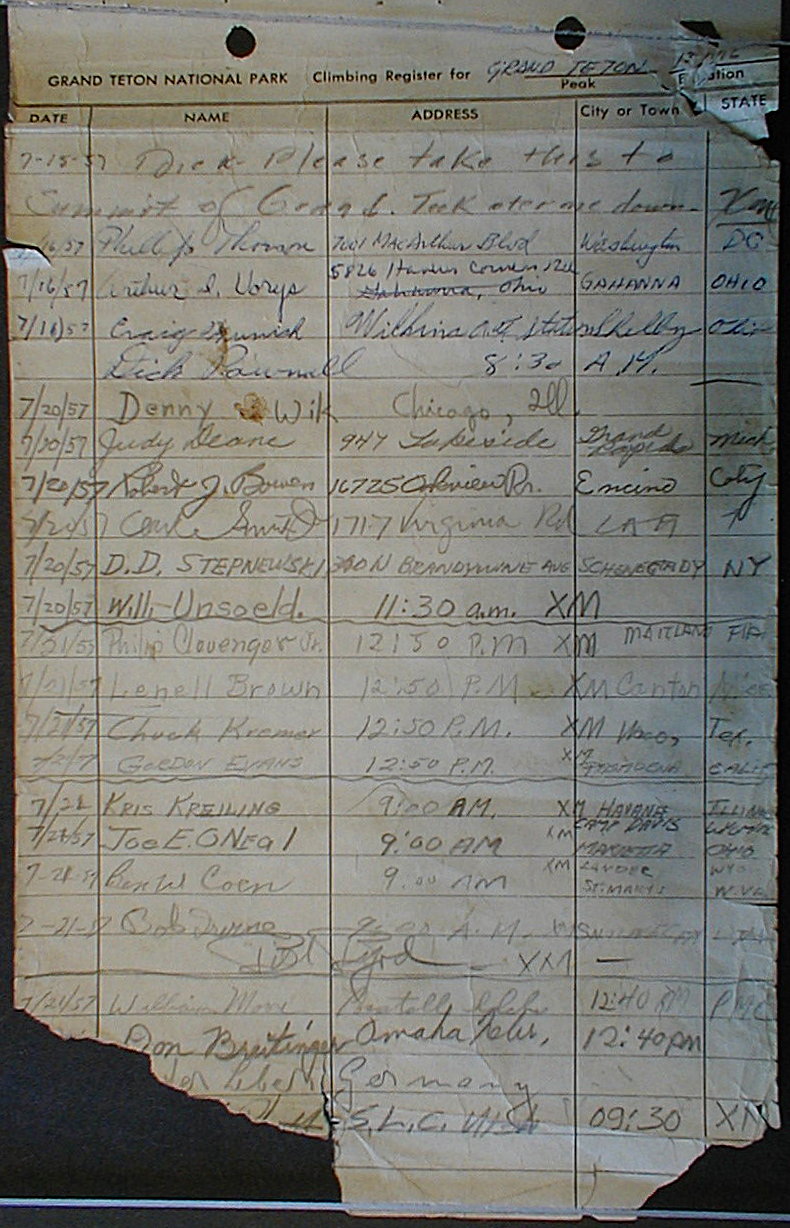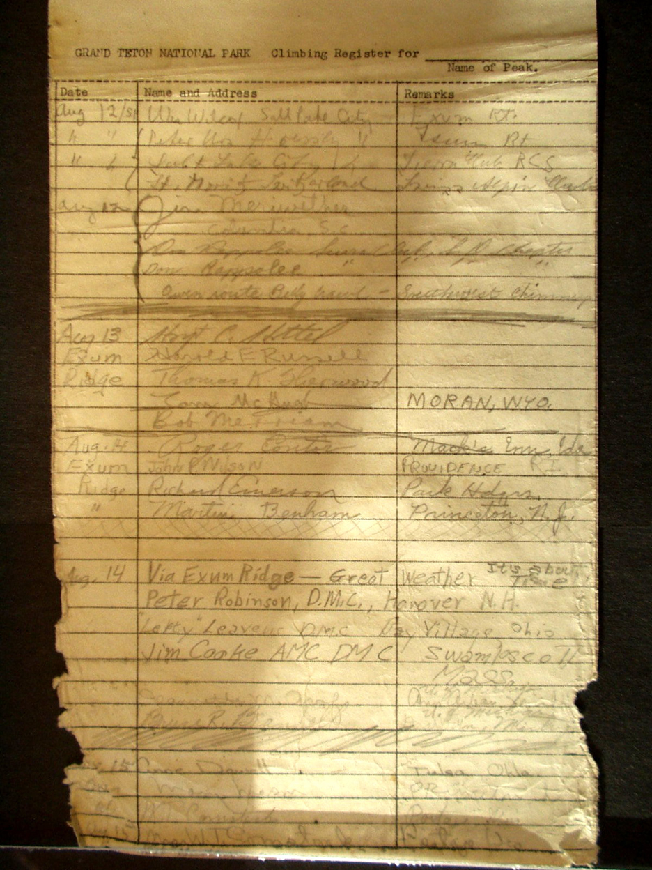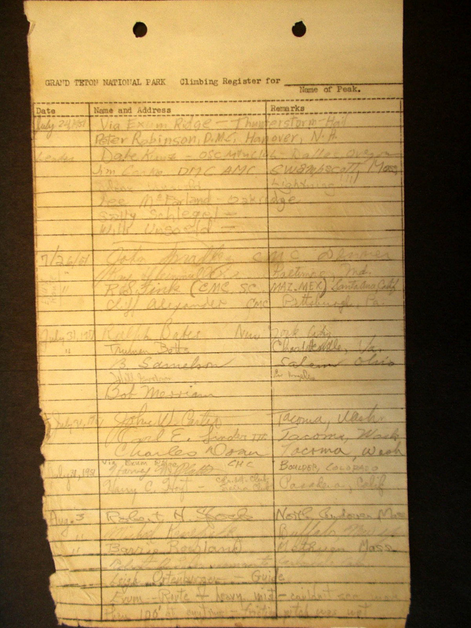 Teton Summit Registers