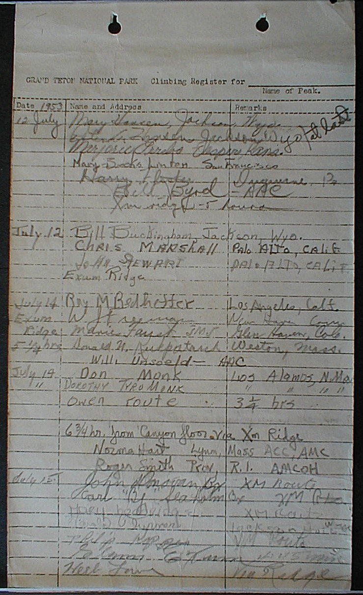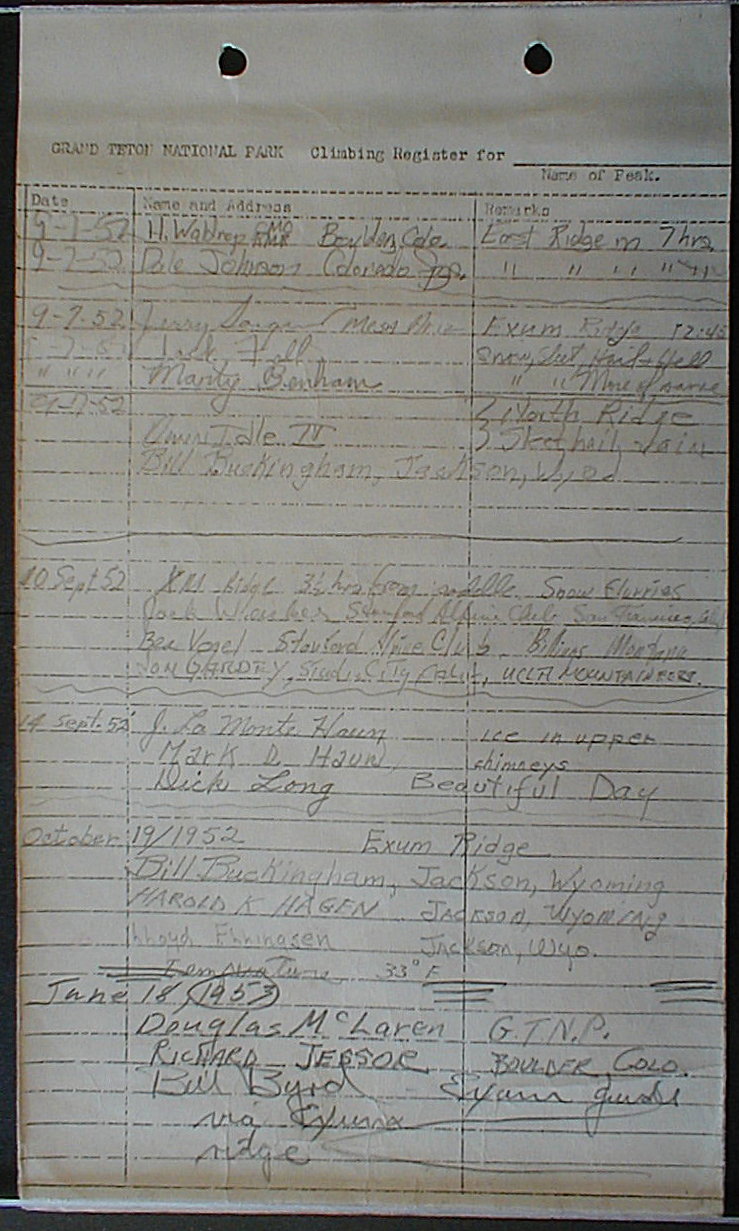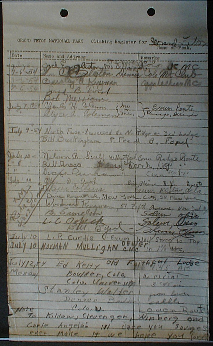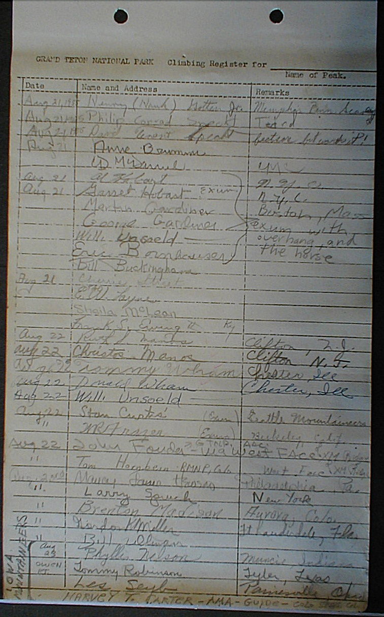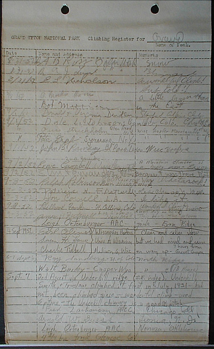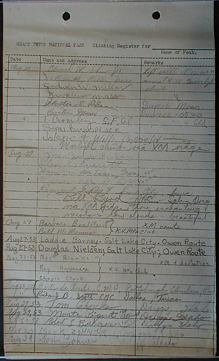 Teton Summit Registers