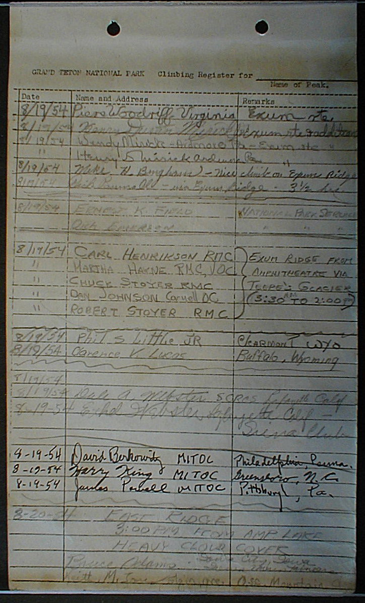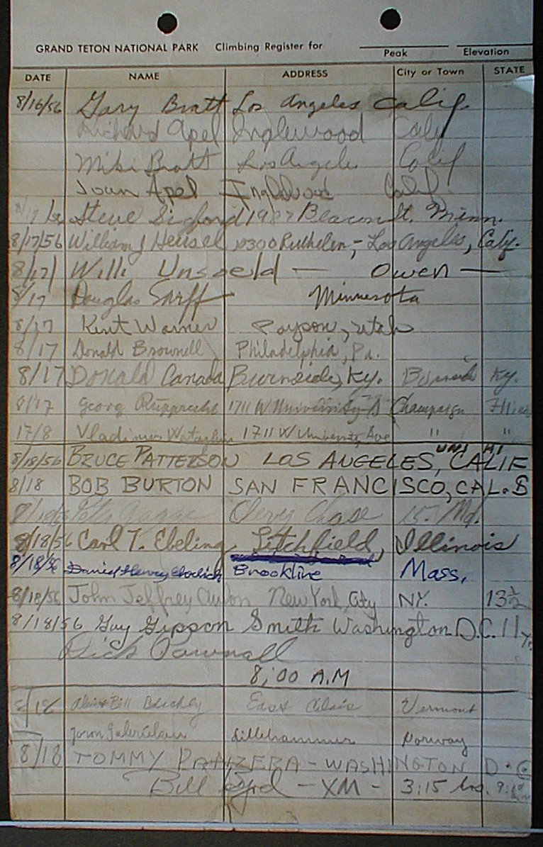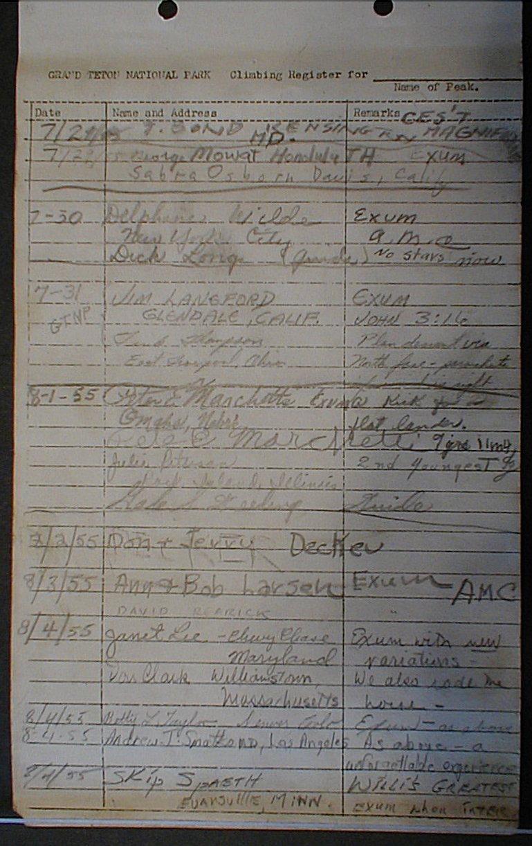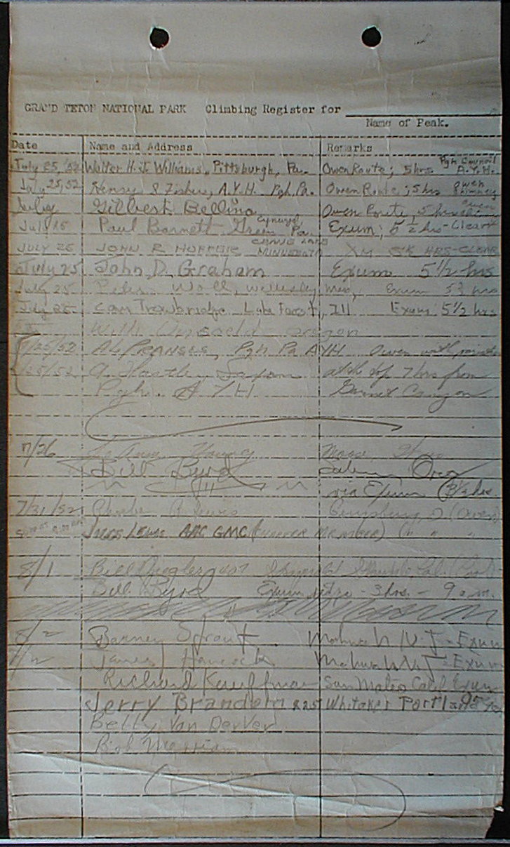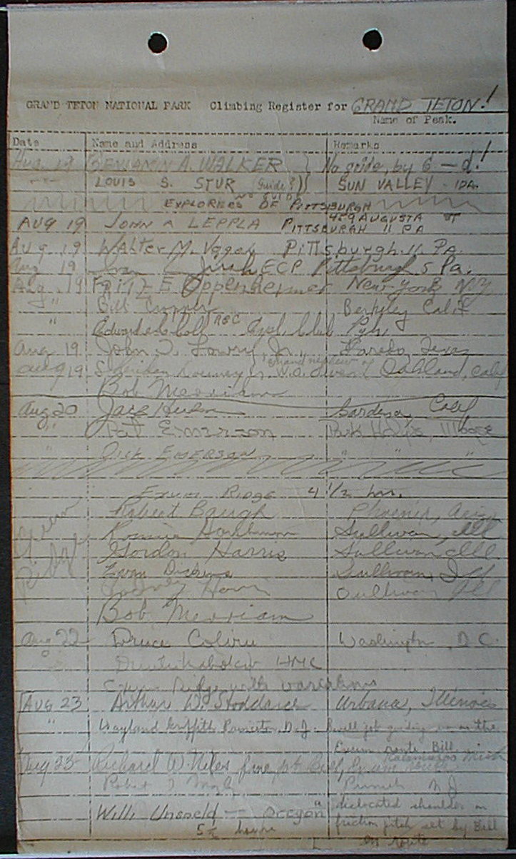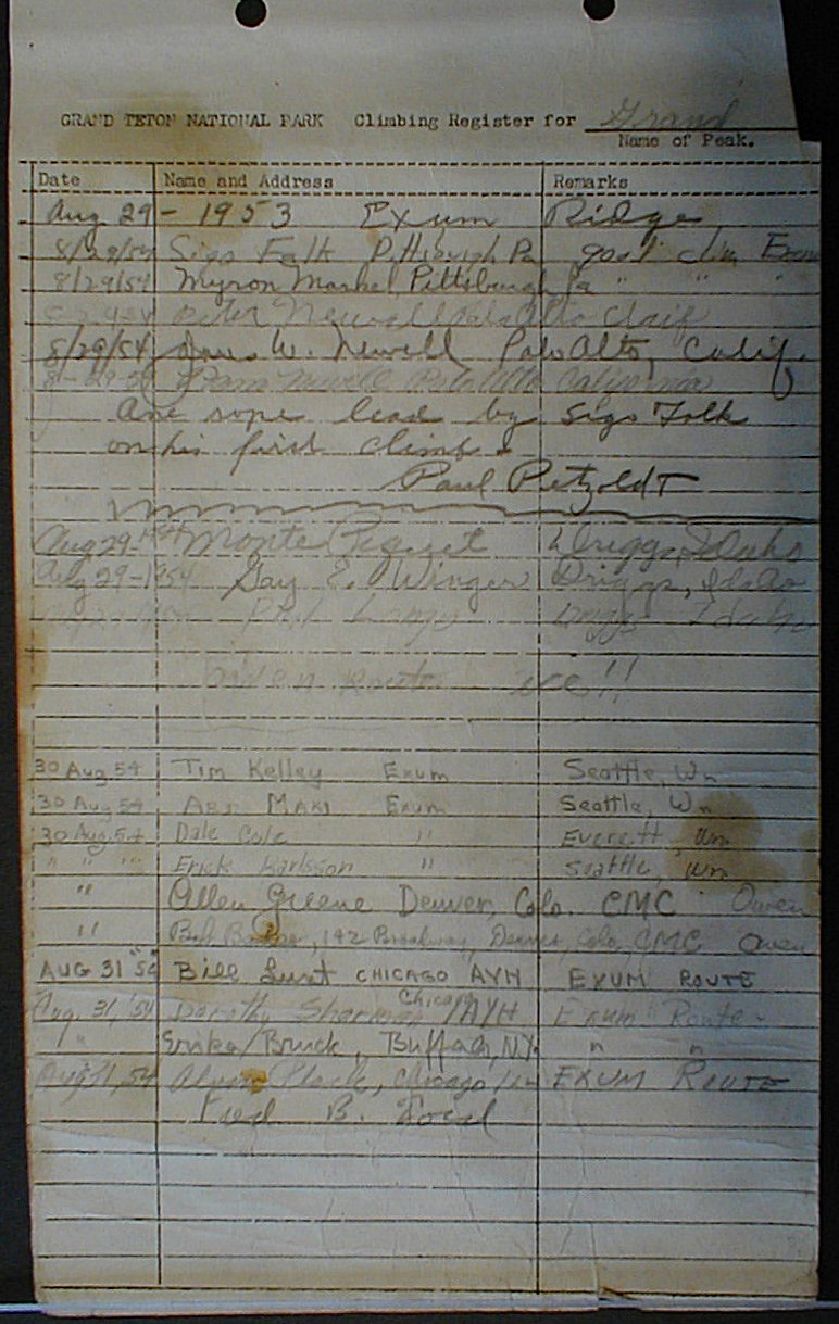 Teton Summit Registers