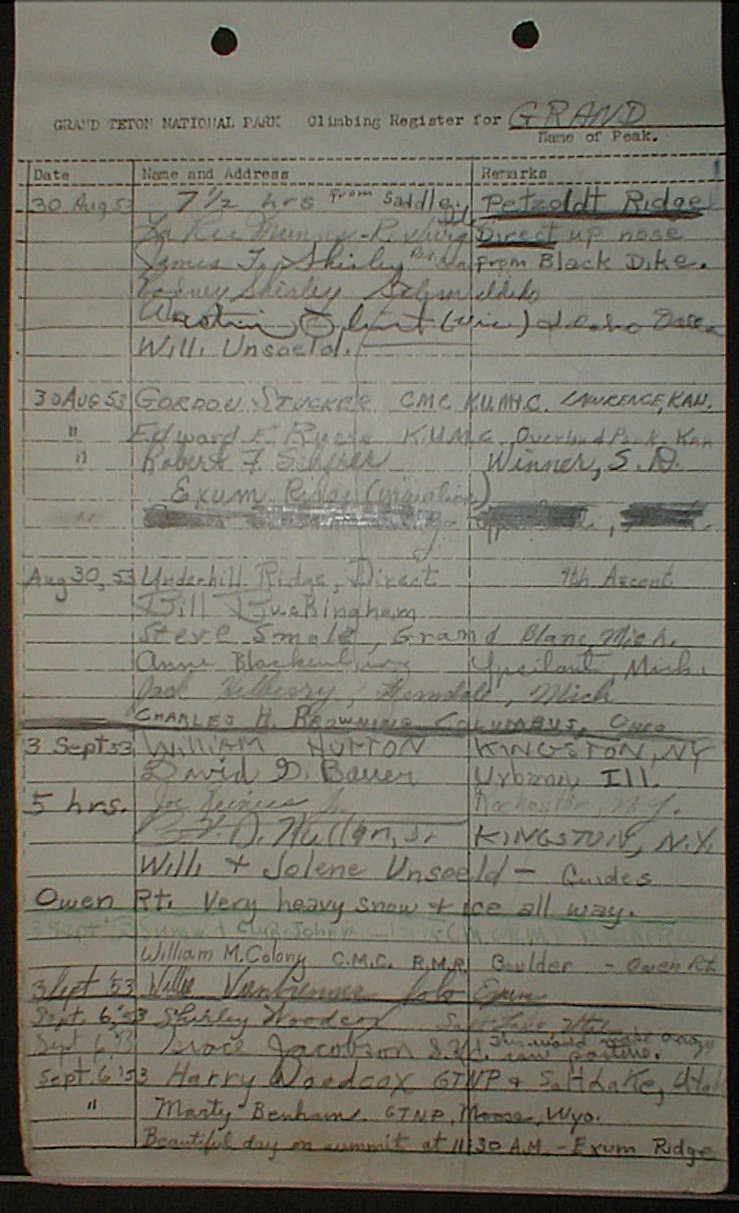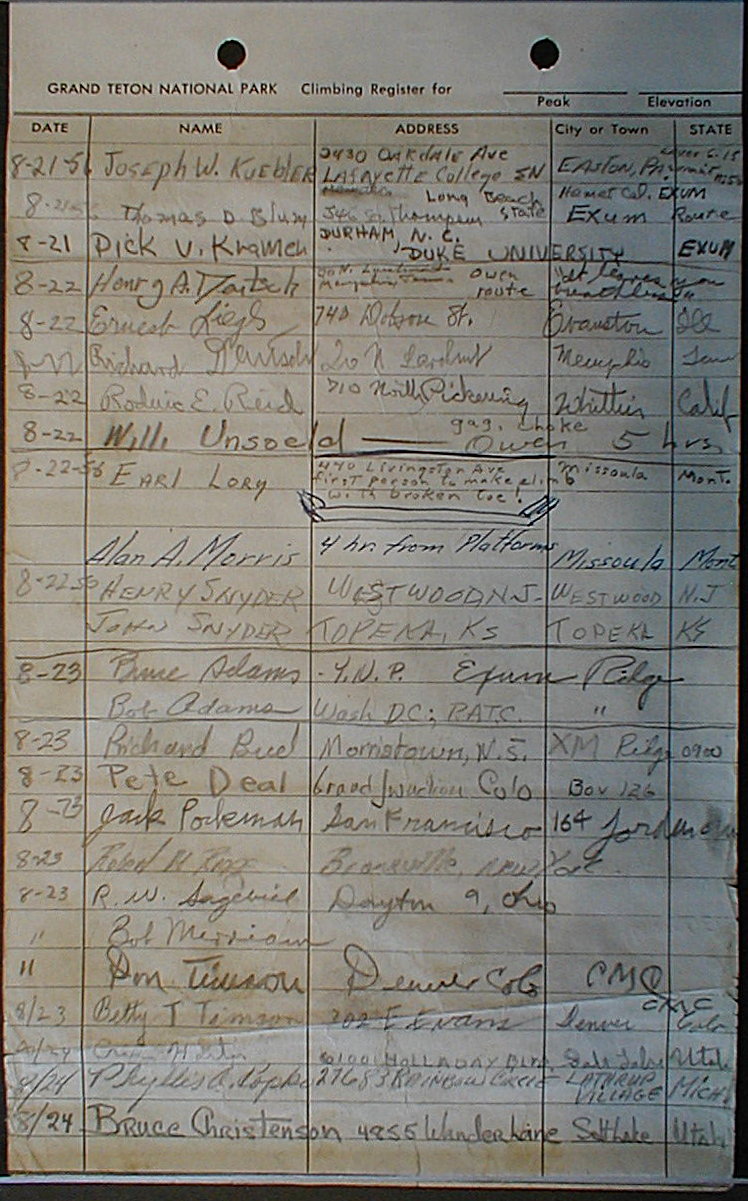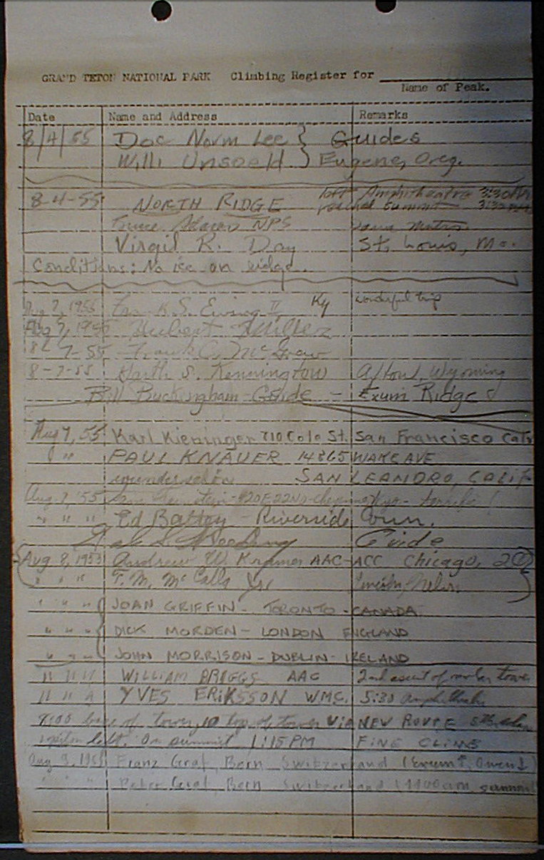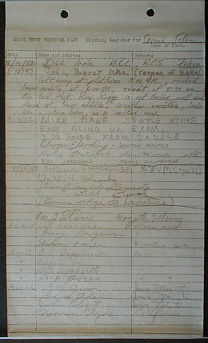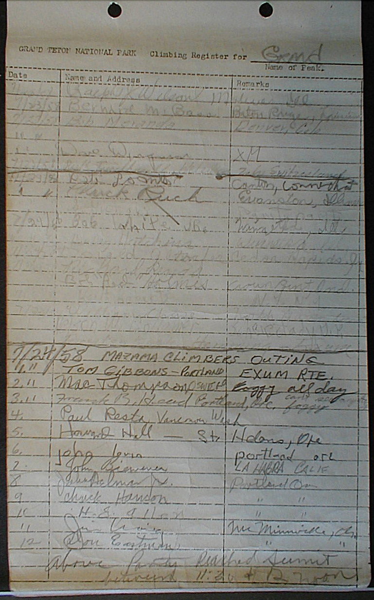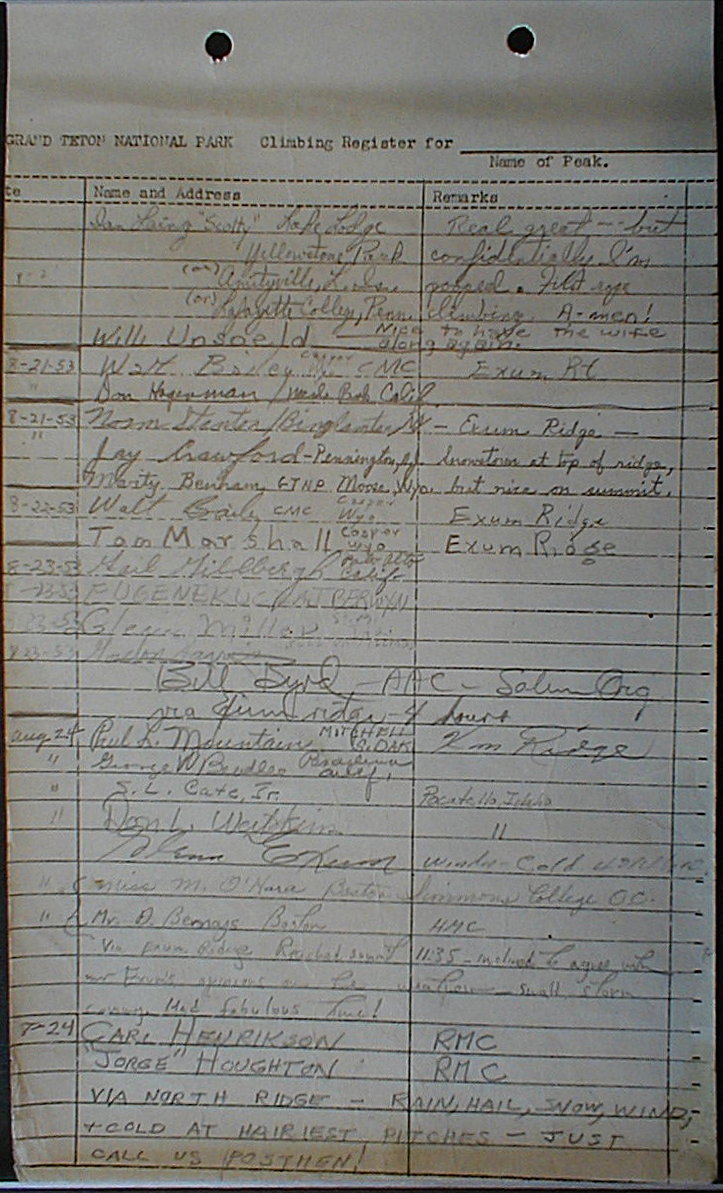 Teton Summit Registers