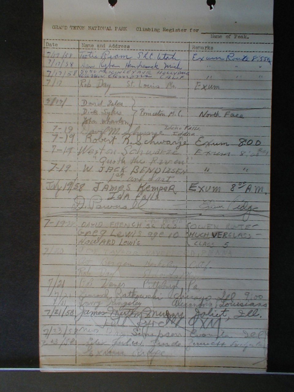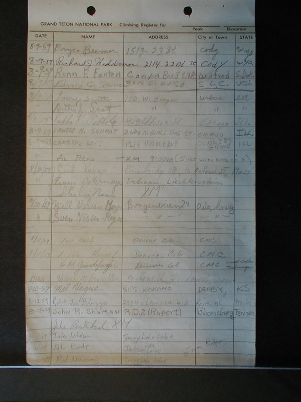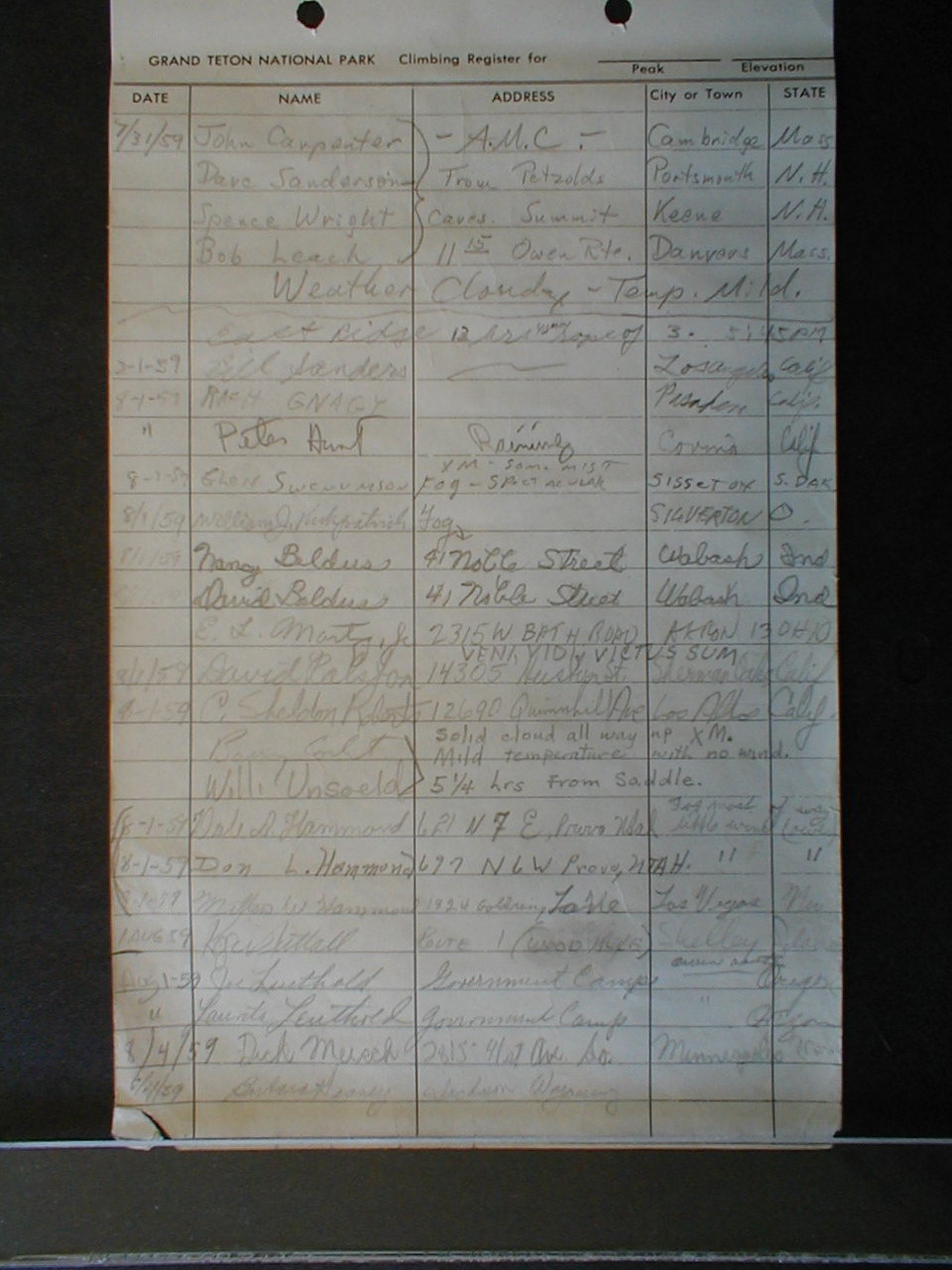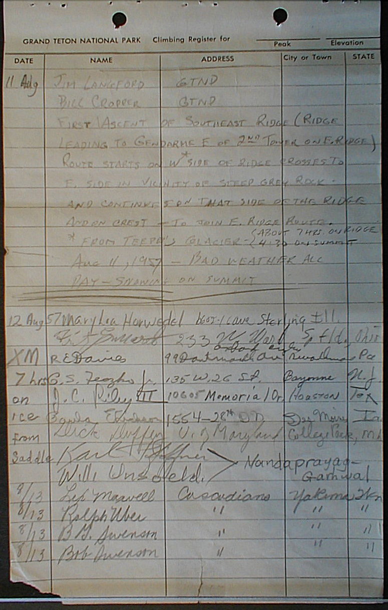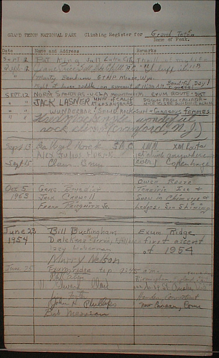 Teton Summit Registers