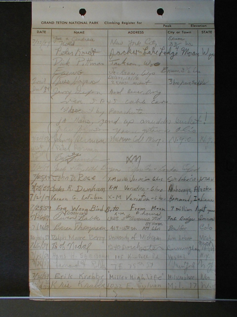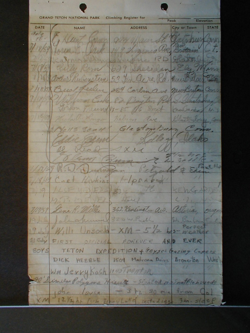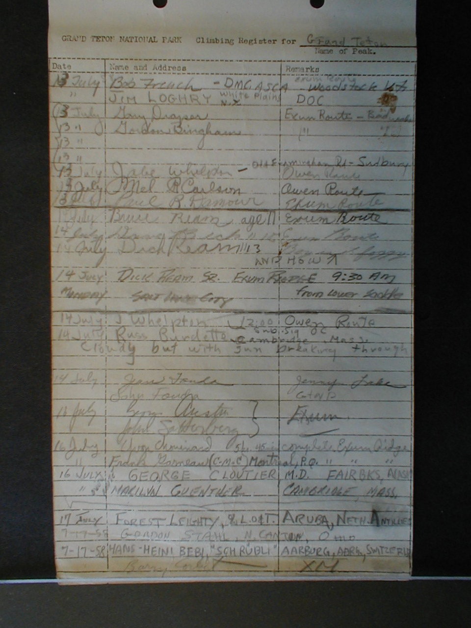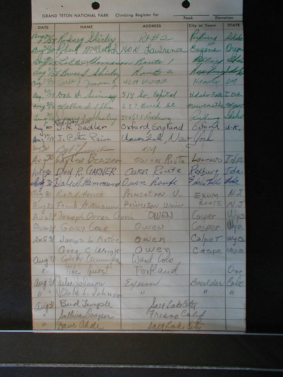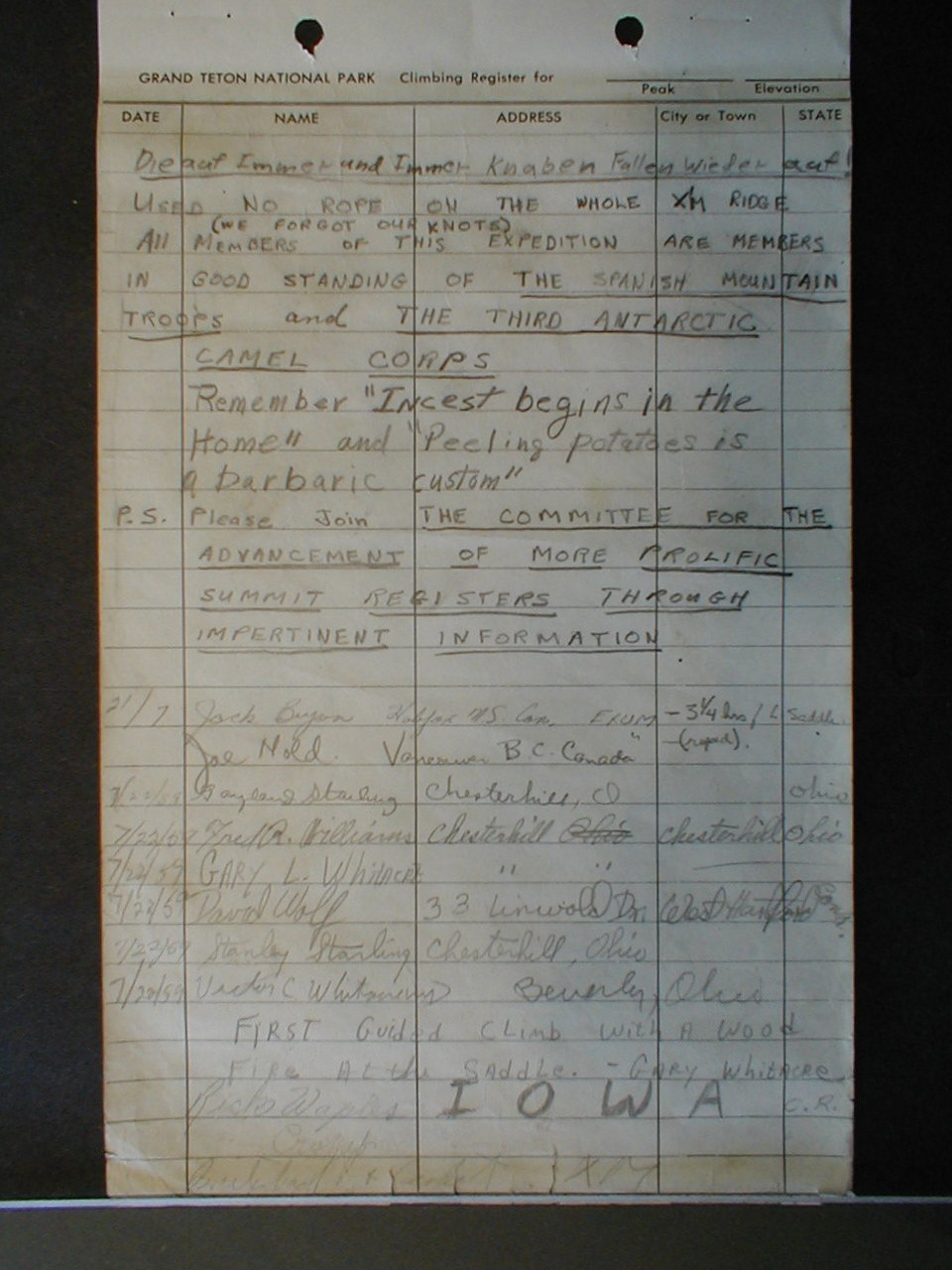 Teton Summit Registers