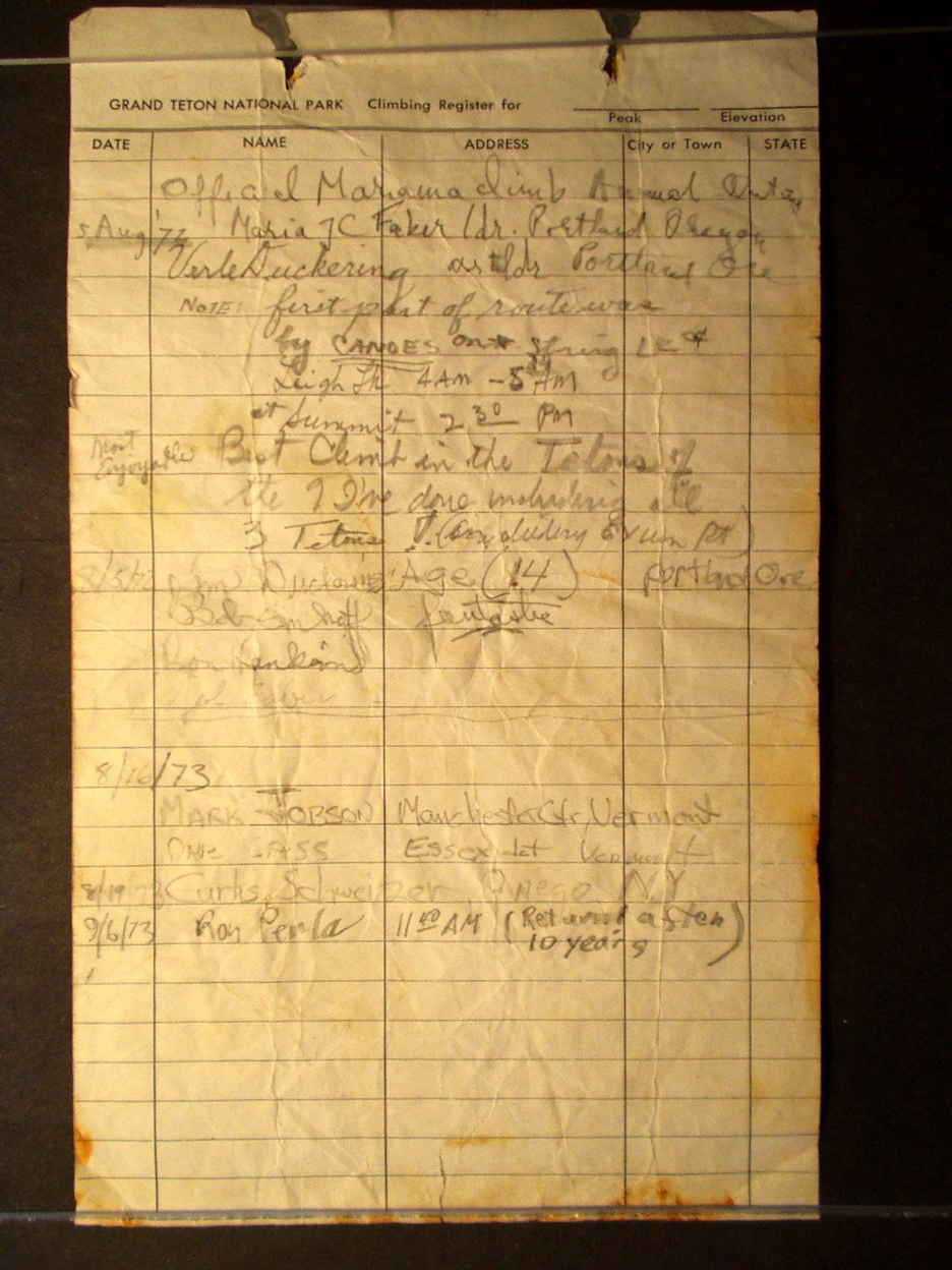 Teton Summit Registers
