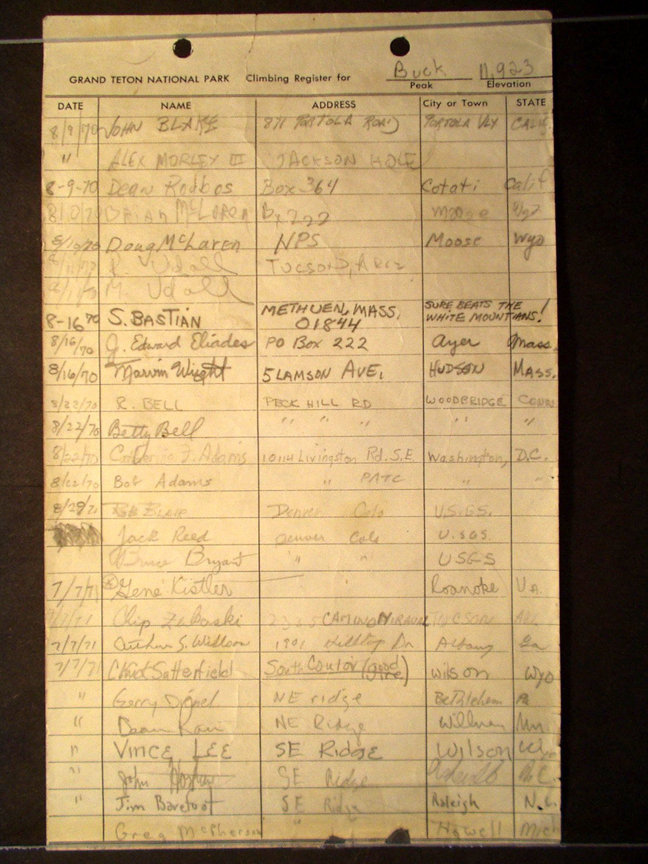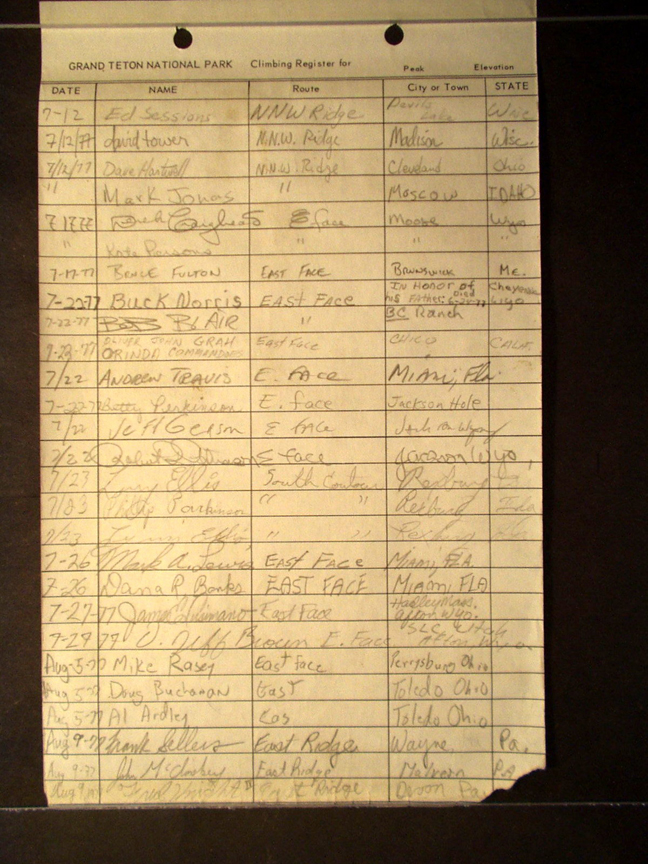 Teton Summit Registers